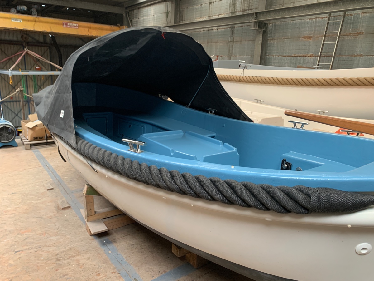 Gerestaureerde 550 reddingssloep. Dikke zwarte kabelaring, 24v 2.5Kw Krautler, accustatus-meter, acculader, 2x 100Ah lithium accu's (uitbreidbaar met nogmaals 2x 100Ah), walstroomaansluiting. Landvasten, fenders en afneembare zwemtrap. Automatische bilgepomp, nav.verlichting. Complete dek-tent.